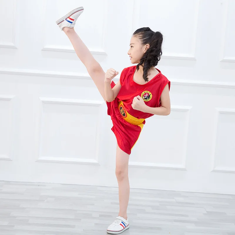 Костюм для бокса для детей кикбоксинг, муай-тай шорты + футболка с короткими рукавами для мужчин женщин сандалии обучение и рисунком «кунг-фу» для занятия боевыми искусствами одежда для MMA