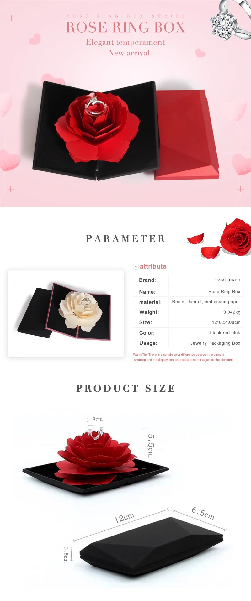 Новое поступление складная черная коробка красное кольцо Роза шкату...