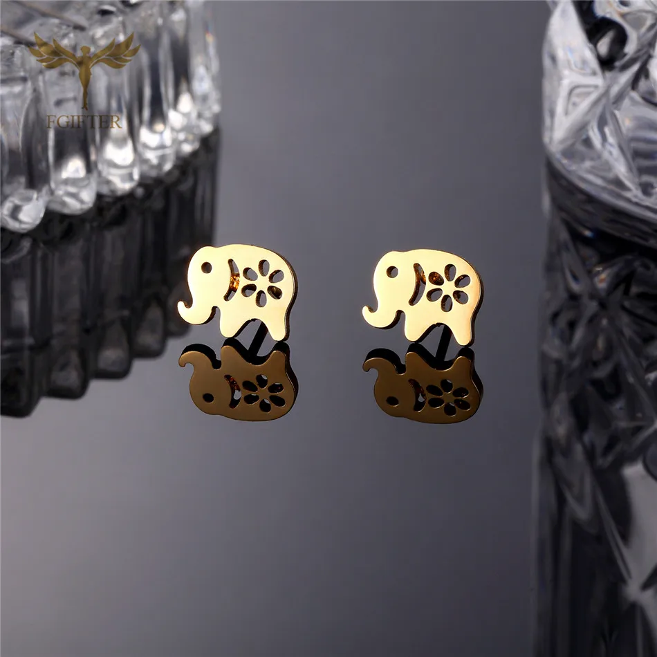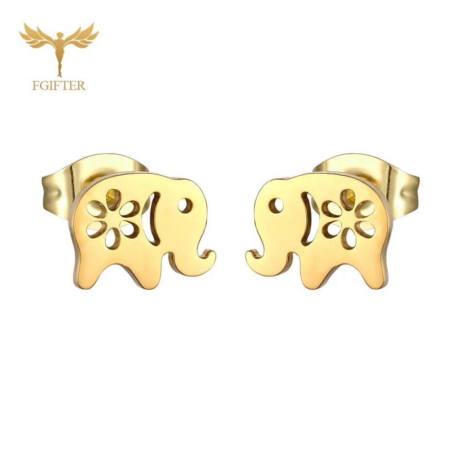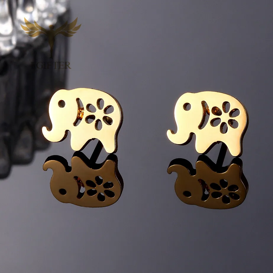 Милые женские серьги для девочек, серьги Слоник, Модные полые серьги-гвоздики с цветами, золотые ювелирные изделия из нержавеющей стали, оптовая продажа