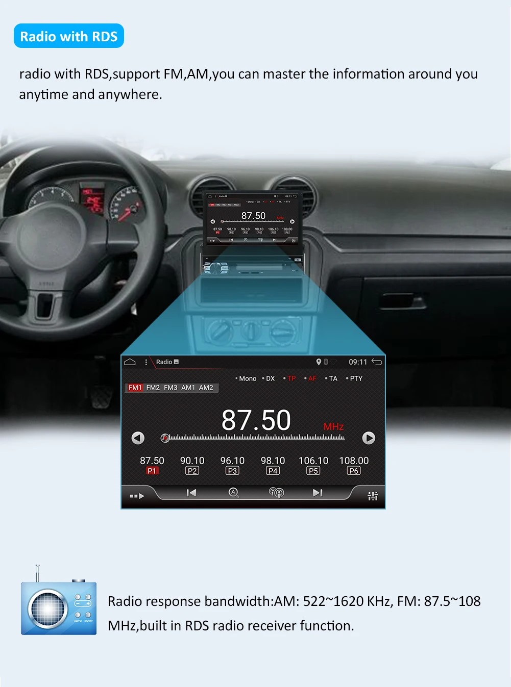 1:Bluetooth для громкой связи. Поиск телефонной книги по Bluetooth от «A до Z»2: емкостный мультисенсорный экран HD: 1024*6003: камера заднего вида/запись привода DVR с задней стороны USB: Поддержка4:OBD, зеркальная ссылка: поддержка (за дополнительную плату)5: Холодный старт около 20-35 секунд6: зеркальная ссылка, управление рулевым колесом: Поддержка7:Wi-Fi: Встроенный/через телефон в качестве точки доступа Wi-Fi.8: поддержка приложений: многие, например: Google Play Store, Skype, Facebook, YouTube, Twitter и т. д.9: Поддержка RDS.FM частота: 87,5-522 мгн AM частота: 1710-кГц10: Автомобильный Интернет: Встроенный Wi-Fi, поддержка 3G/4G/Средний (за дополнительную плату)11: поддержка онлайн-карт GPS, таких как Google Yandex.SYGIC,IGO,TOMTOM/ Waze. Яндекс-карта, свяжитесь с нами, отправьте для установки12: мульти OSD язык s: английский/русский/французский/немецкий/испанский/итальянский/арабский/Португальский/Турецкий/тайский/Польский/иврит и т. д. 60 видов языков13: Рабочая температура: -20 °C ----- + 70 °C Температура хранения: -30 °C ----- + 80 °C14: Логотип загрузки: Выберите встроенные 50 видов логотипа автомобиля. Выберите логотип запуска автомобиля по своему усмотрению.15: кабели RCA для сабвуфера, кабель питания plug and play, простота установки16: новая ОС Android, Google Play Store, Skype, Facebook, YouTube, Twitter и т. д.17. Гарантия: 1 год"