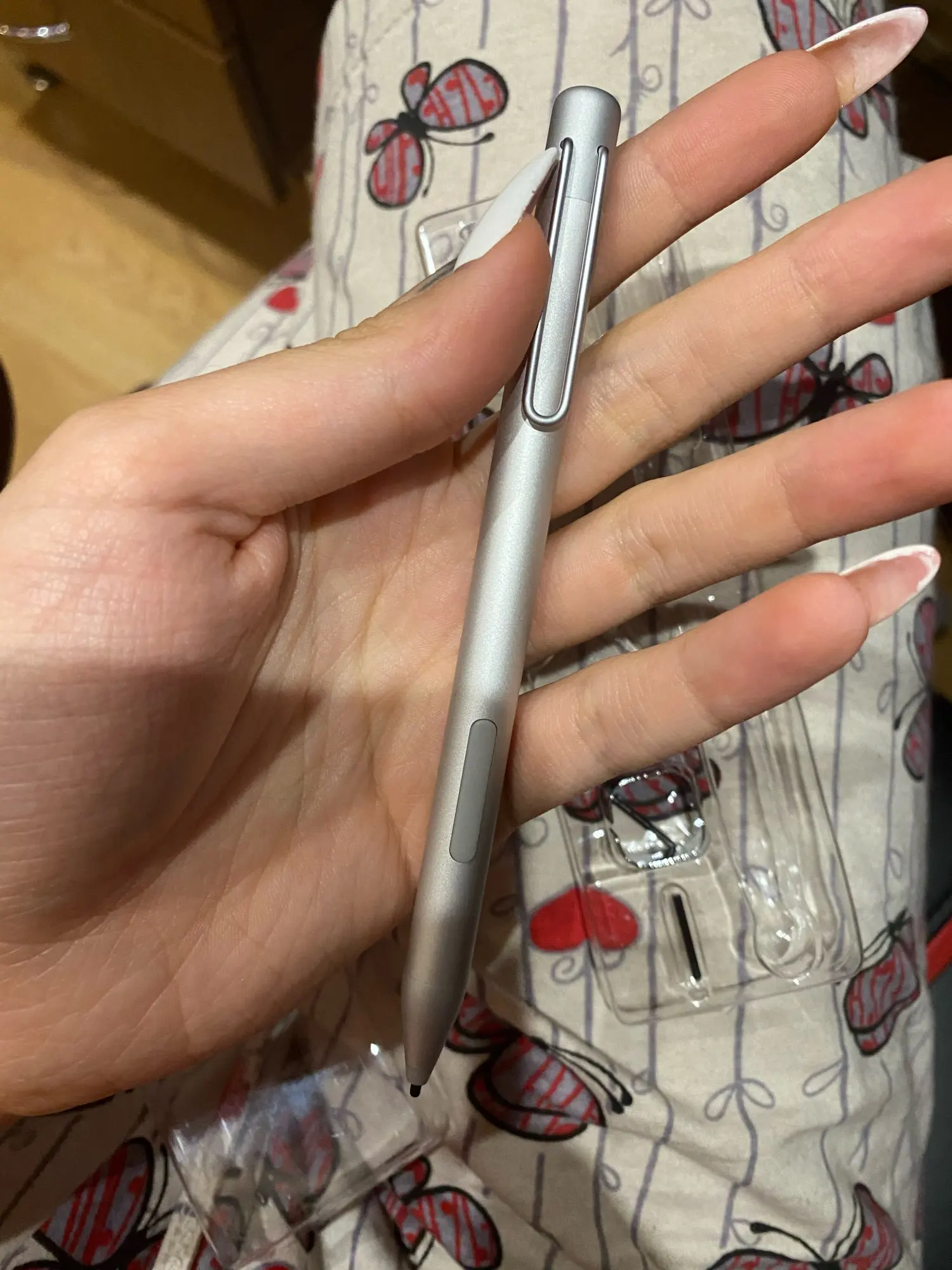 Очень отличный стилус. Отлично работает! Во-первых, он выглядит идентично изображению продукта. Во-вторых, функция нажатия, Щелчок правой кнопкой и функция стирания с моей поверхностью Pro 7. Я очень доволен, я могу рекомендовать этого продавца для этого продукта!