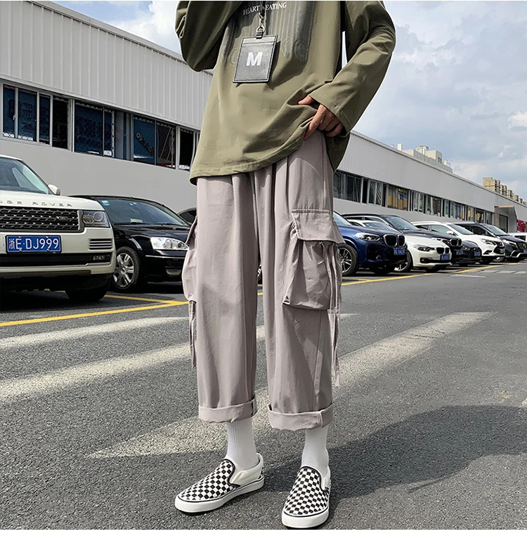 Брюки-карго мужские прямые с завышенной талией, в стиле K-POP
