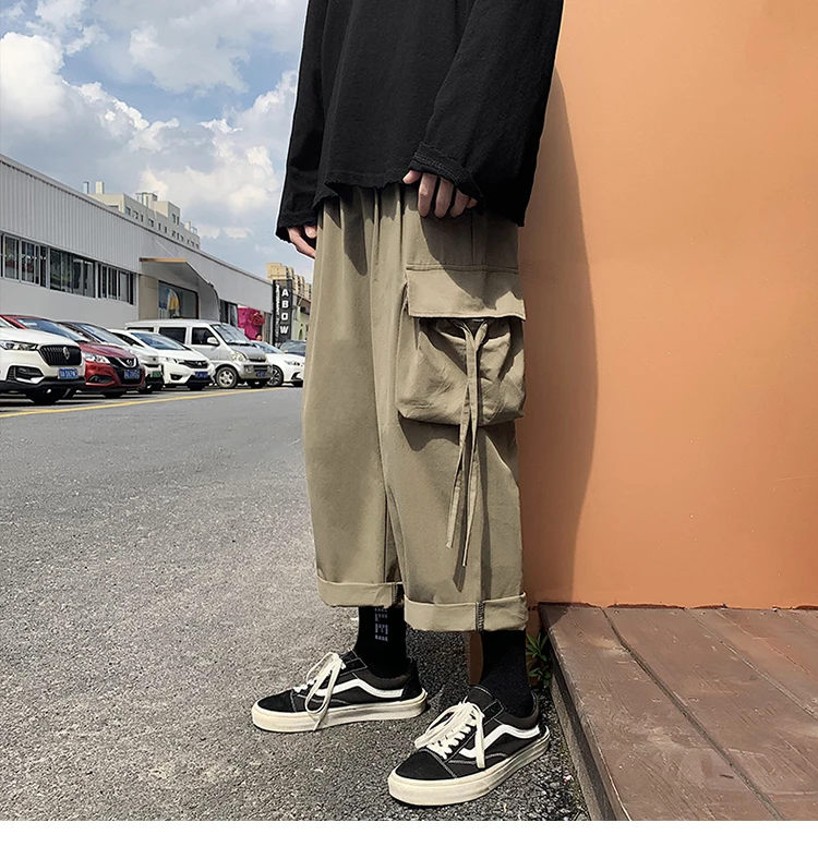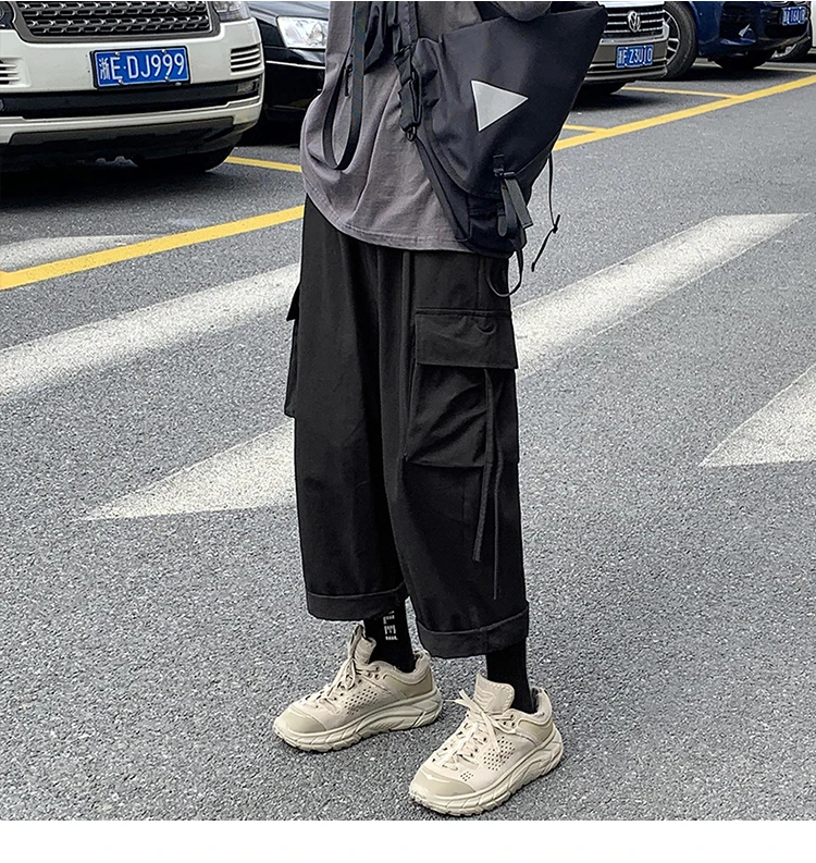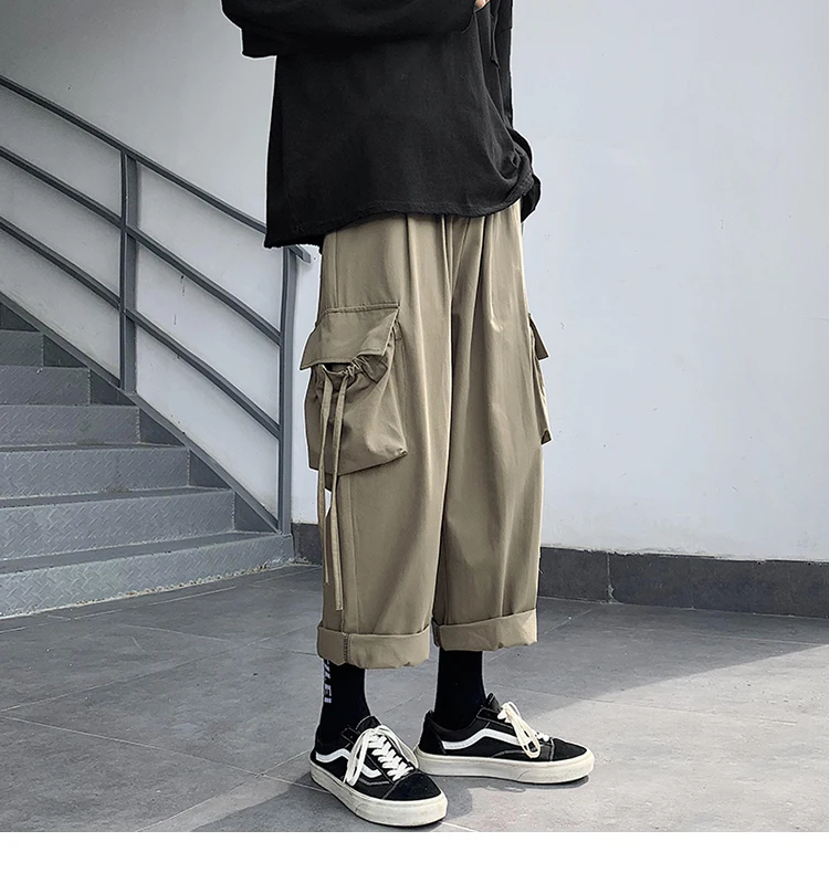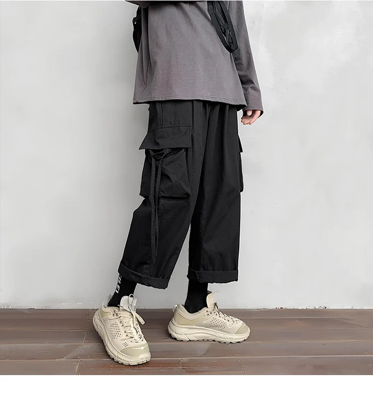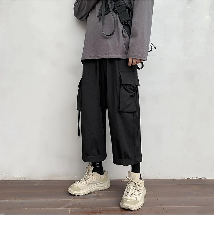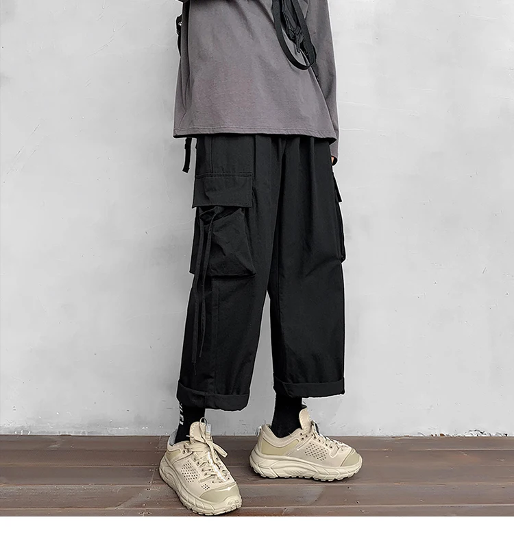 Брюки-карго мужские большого размера с лентами, с карманами, в японском стиле