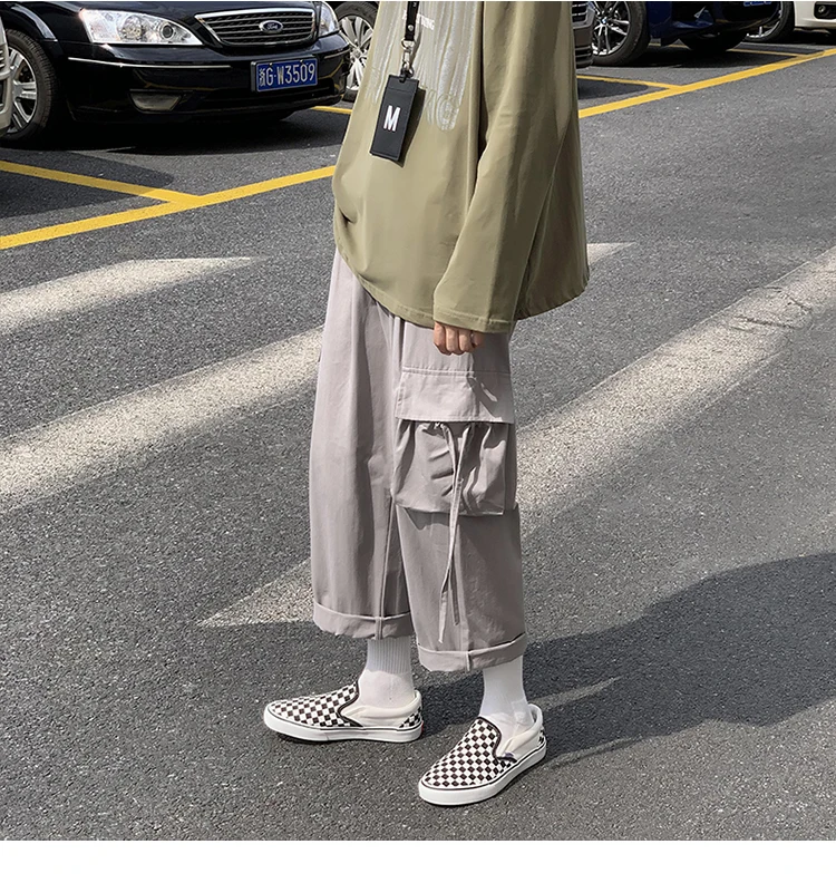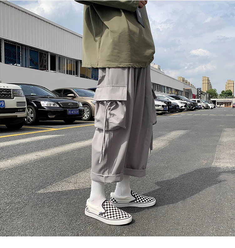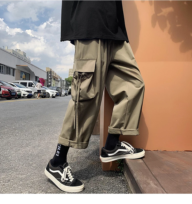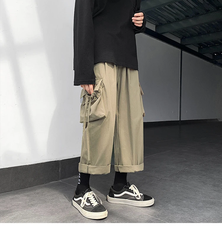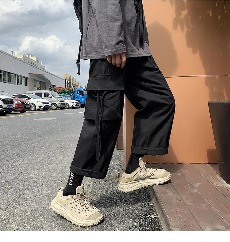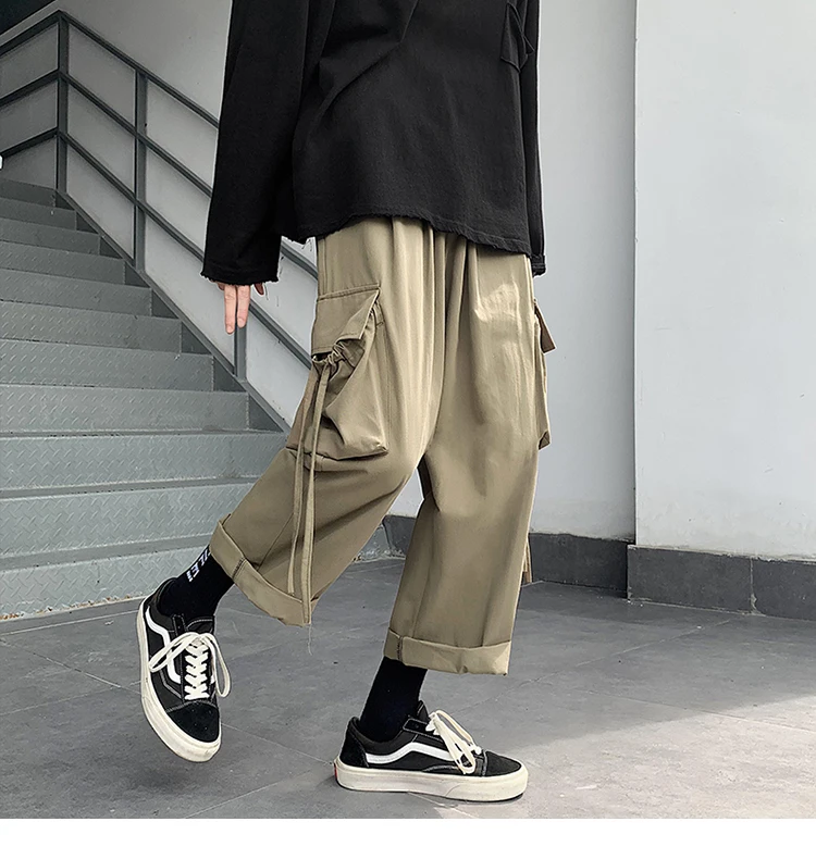Брюки-карго мужские большого размера с лентами, с карманами, в японском стиле