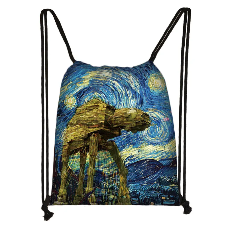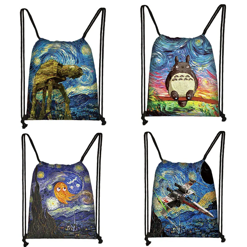 Модная сумка на шнурке с изображением звездной ночи Ван Гога, рюкзак с рисунком Тоторо, маленькая дорожная сумка, рюкзак, пляжная сумка, детский подарок