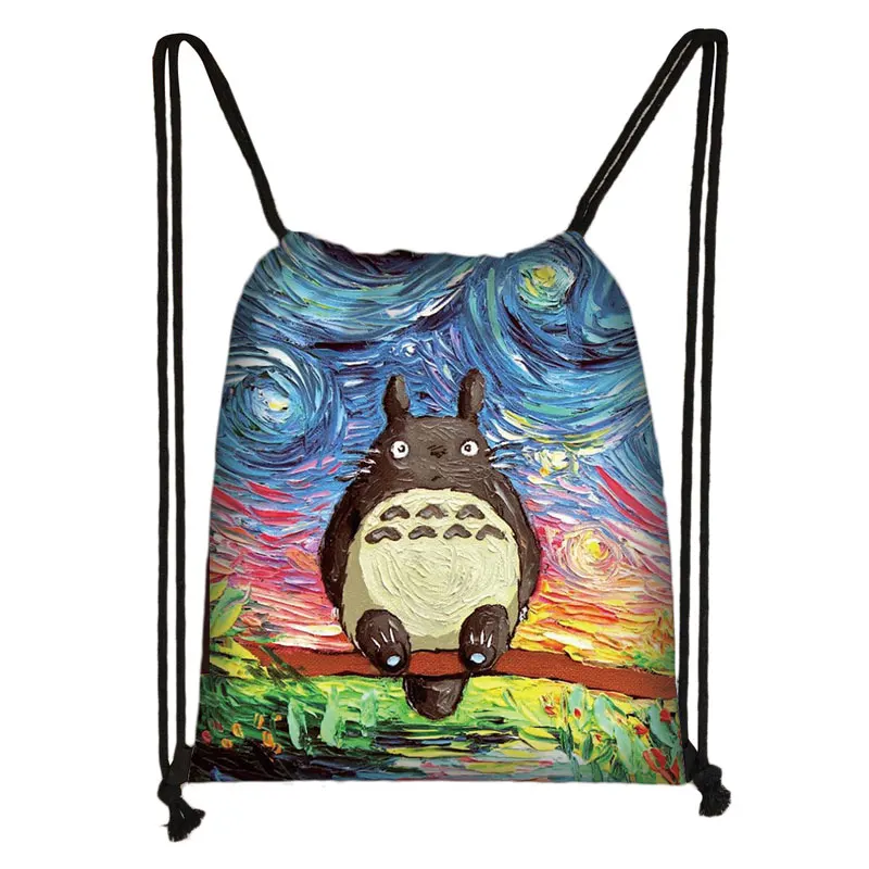 Модная сумка на шнурке с изображением звездной ночи Ван Гога, Сумка с рисунком Тоторо, дорожная сумка, небольшой рюкзак, пляжная сумка, детский подарок