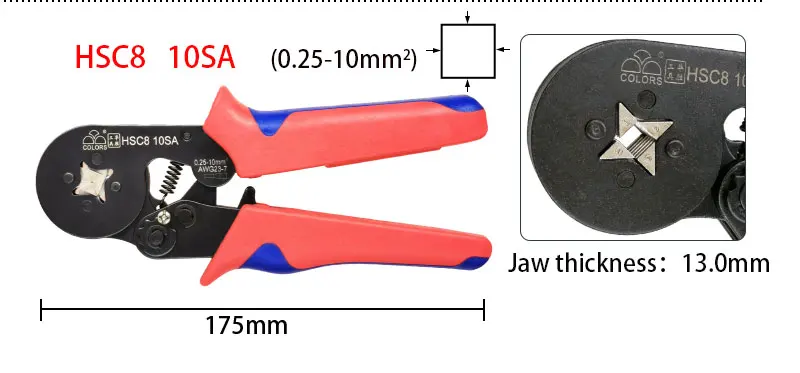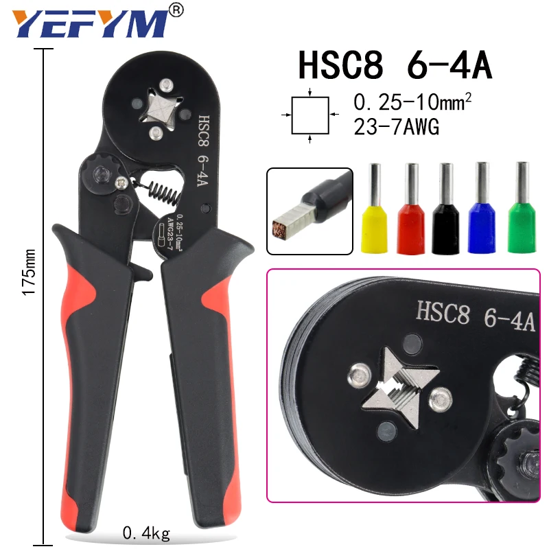 Инструменты для обжима, плоскогубцы, коробка с зажимом для Электрических Трубчатых клемм HSC8 10S 0,25-10 мм2 23-7AWG 6-4B6-6 0,25-6 мм2 16-4, наборы инструментов