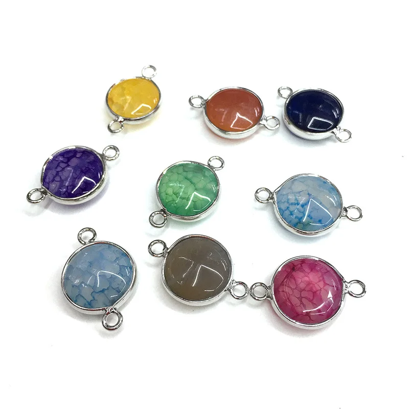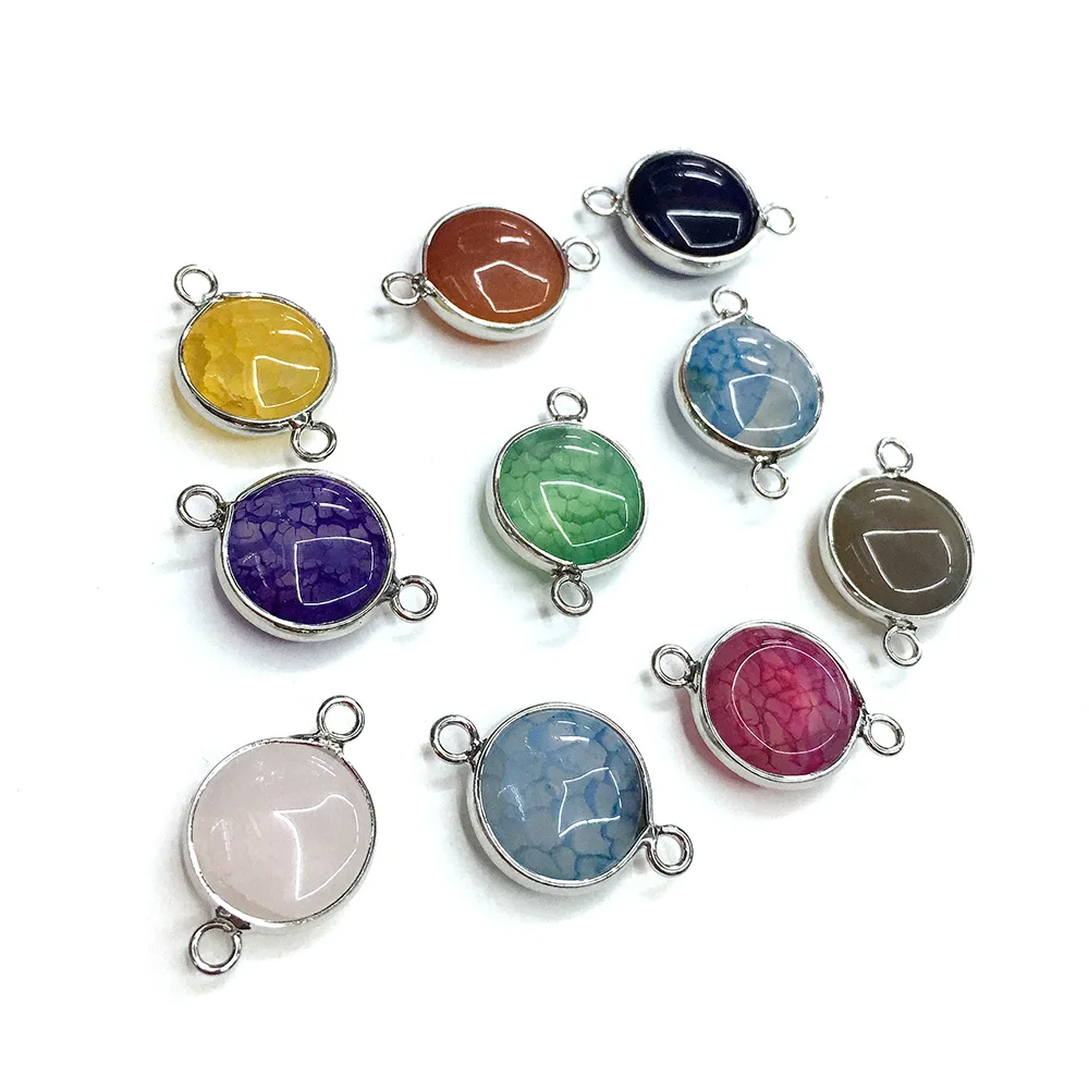 Розовые камни круглый посеребренный полудрагоценный камень, соединитель для изготовления ювелирных изделий темперамент аксессуары Размер 14x14mm
