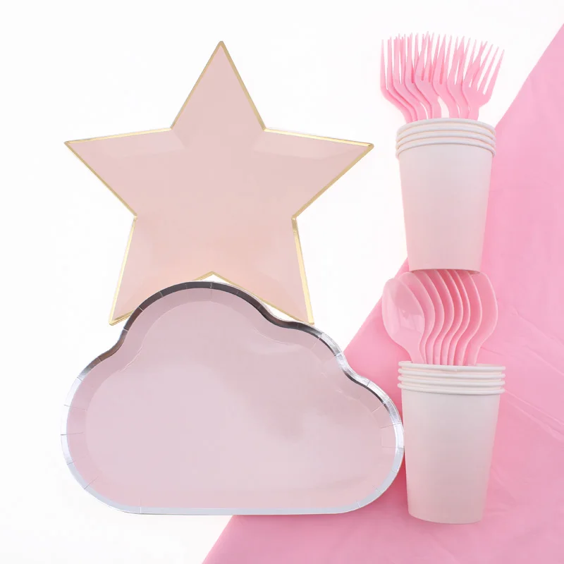 Одноразовая посуда из серии Platos Desechables, праздничная, розовая, облака, пятиконечная звезда, салфетка для украшения вечерние