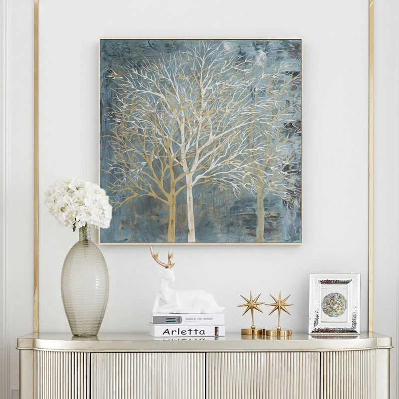 Абстрактное искусство, деревья, картина маслом на холсте, плакаты и принты, серая, синяя картина, настенное искусство для гостиной, украшение дома