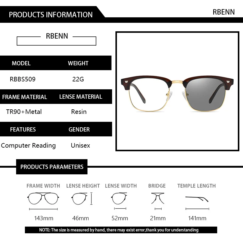 Фотохромные очки для чтения RBENN, новый дизайн, для мужчин и женщин, для мужчин, с блокировкой синего светильник, очки для дальнозоркости с диоптриями + 0,5 0,75 1,75 2,25 2,75 3,25 3,75 4,5 5,0 6,0