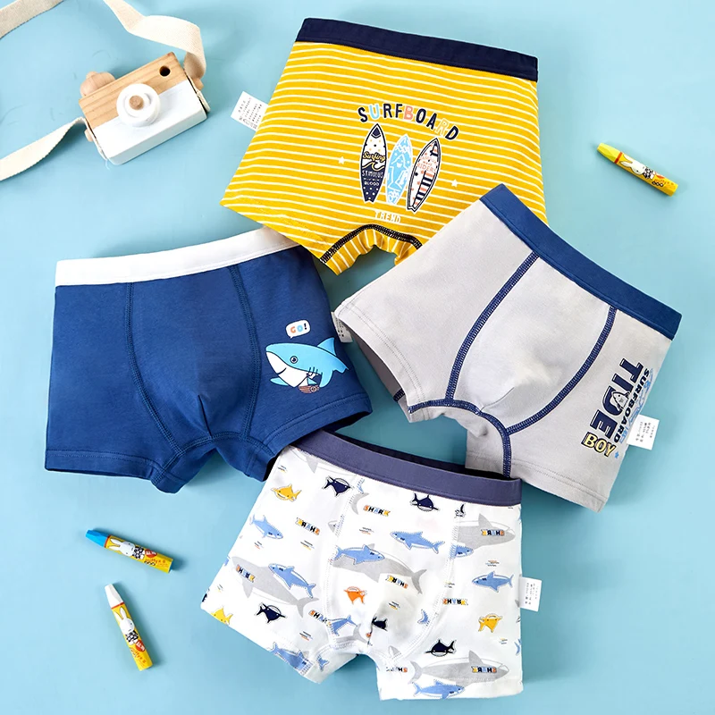 Хлопковое нижнее белье с акулой для мальчиков, шорты-боксеры с рисунком для мальчиков, Детские трусы, детская одежда для 3, 4, 6, 8, 10, 12, 14 лет, OMGosh
