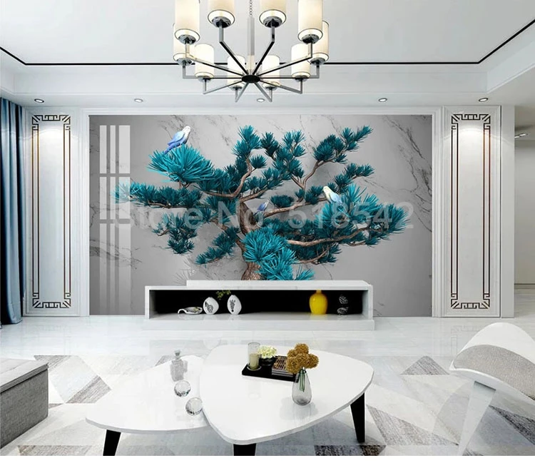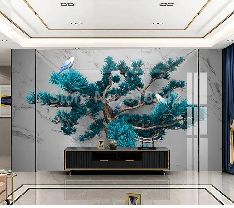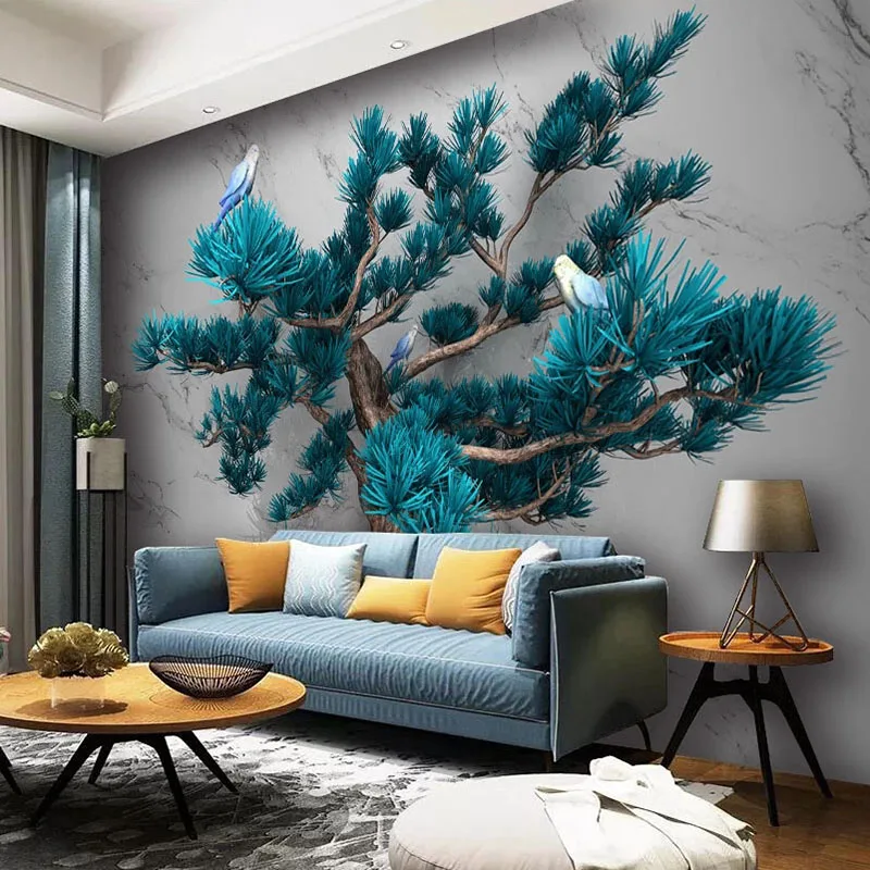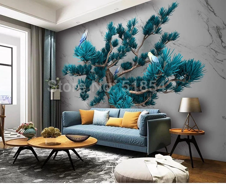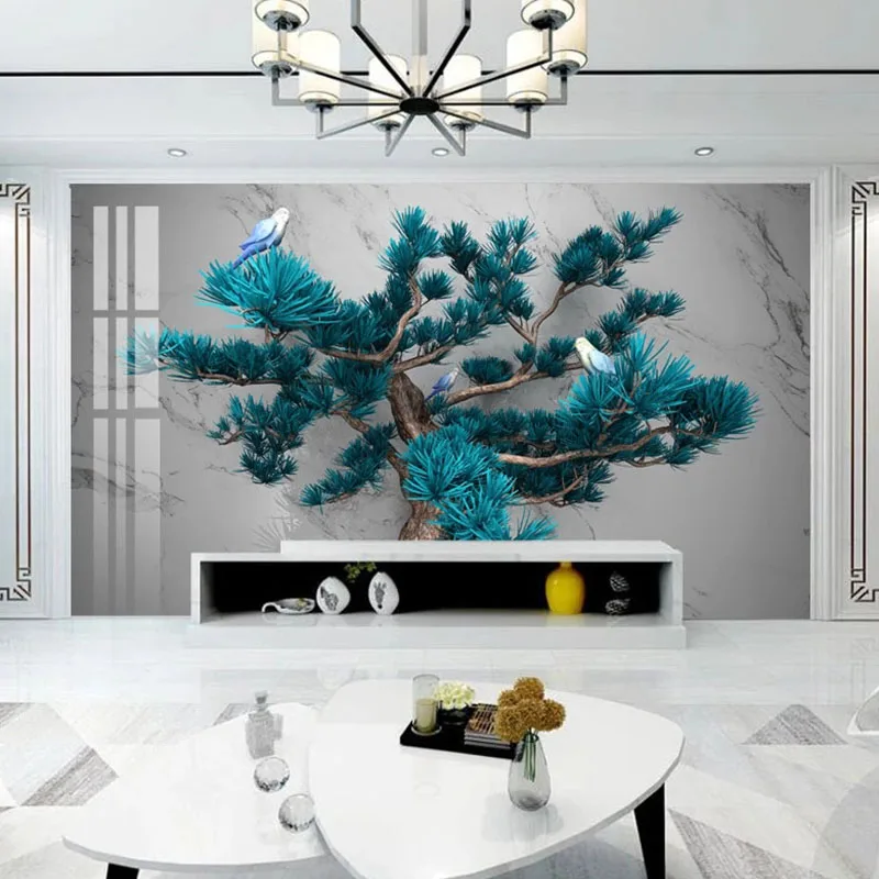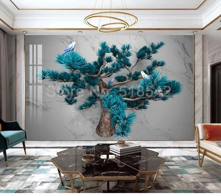 Настенные росписи на заказ для спальни, 3D обои с изображением голубой сосны, попугая, фона для гостиной, мраморные фрески, домашний декор