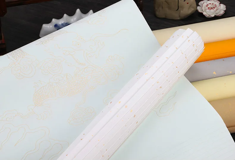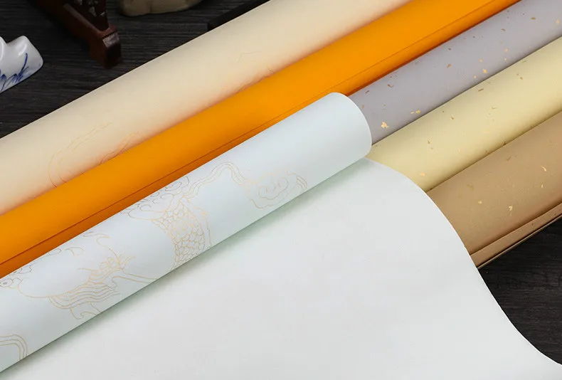 Рисовая бумага для китайской каллиграфии с пятнистым рисунком, рисовая краска в стиле ретро, полузрелая бумага Xuan, 10 листов, 34*138 см