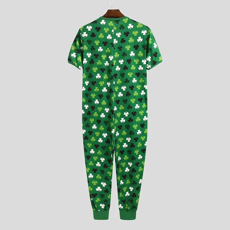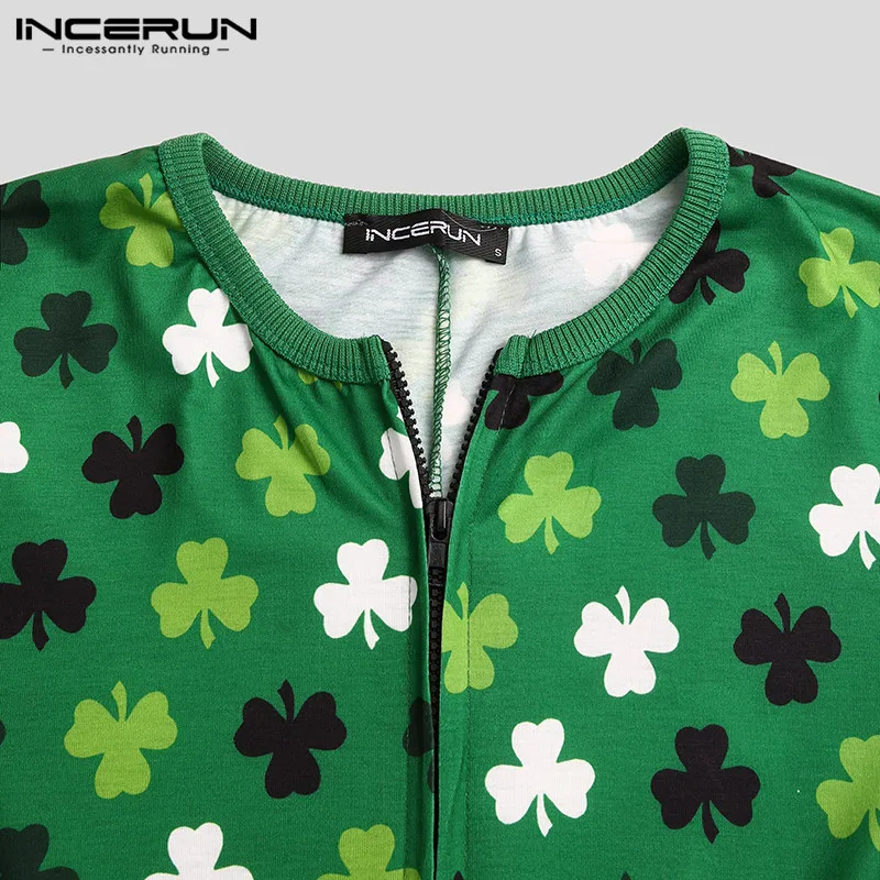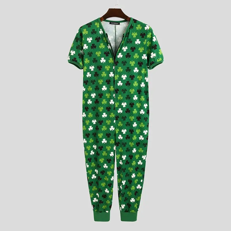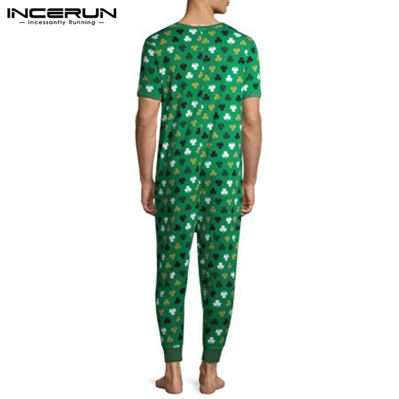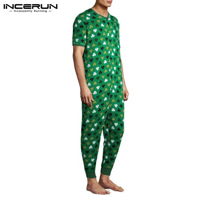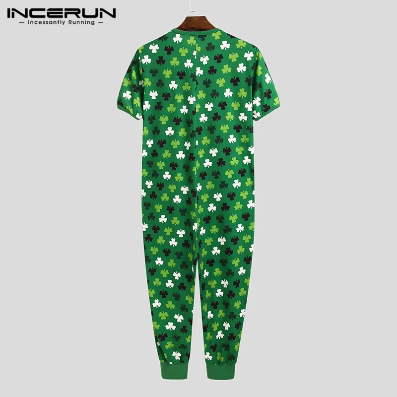 Комбинезон INCERUN мужской с принтом, модная одежда для сна с коротким рукавом и V-образным вырезом, домашняя одежда, дышащий Ромпер для отдыха, большие размеры 7, на лето