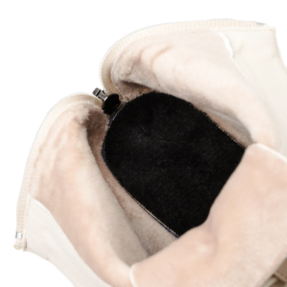 Товар полностью соответствует описанию. Цвет как на картинке, светло бежевый. Выполнены качественно, без недостатков. Размер подошёл, заказала 8.5(39) на стопу 24.5 см. Сзади молния, очень удобно. Каблук почти не чувствуется, удобный. На мою узкую ногу очень хорошо сели. Кожа очень тоненькая, внутри немного меха, но не выглядит сильно тёплым. очень довольна покупкой!