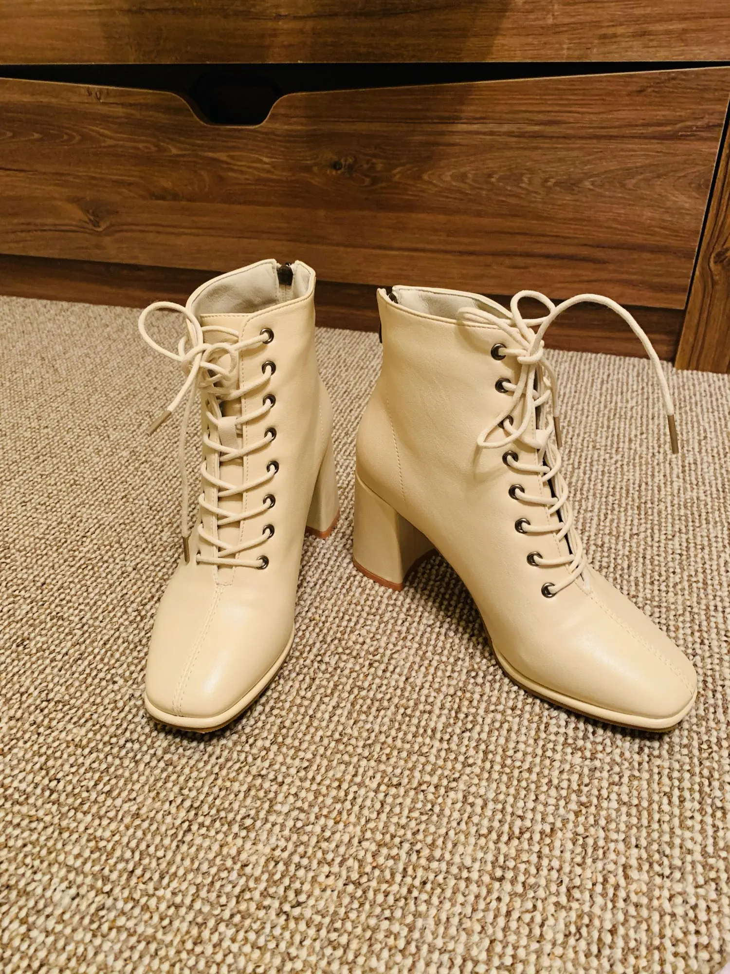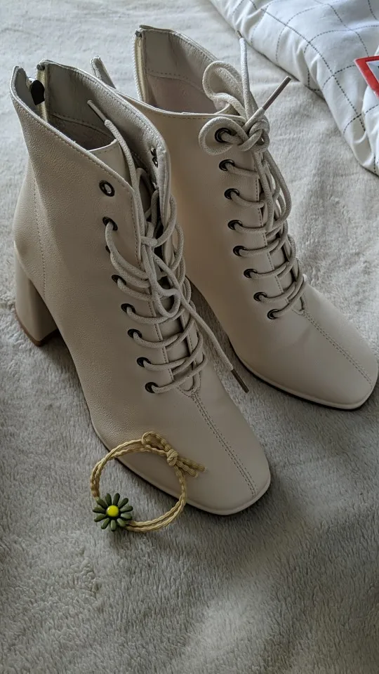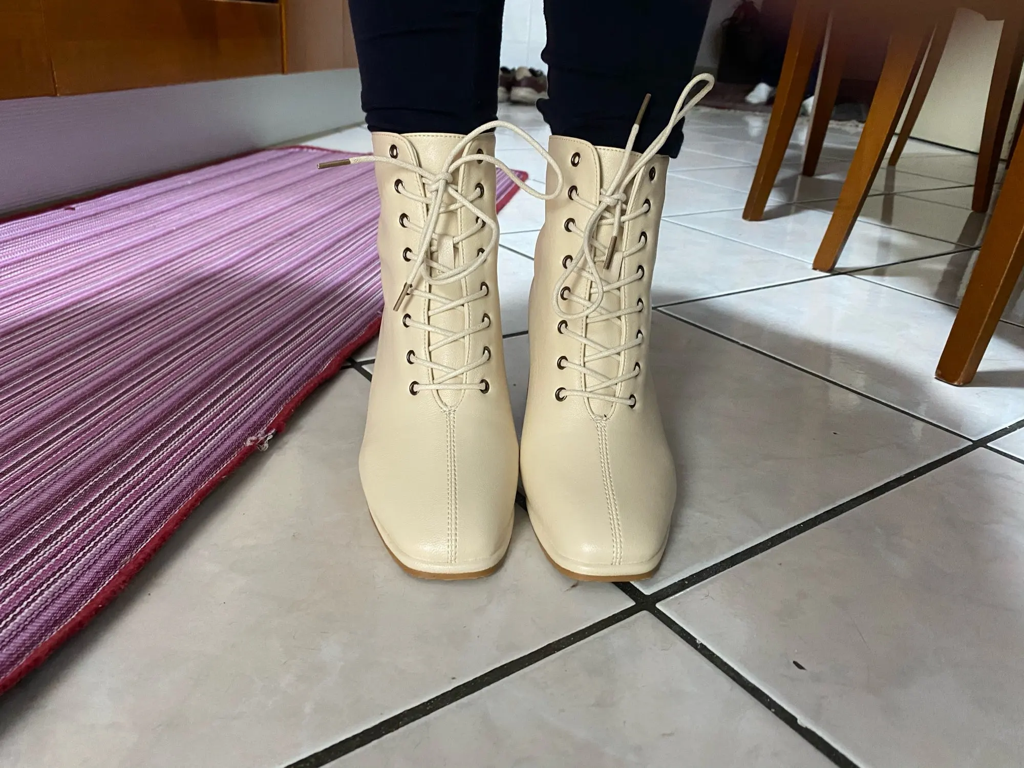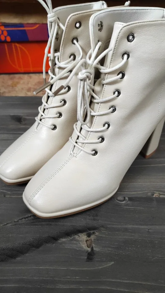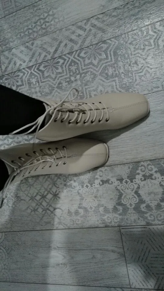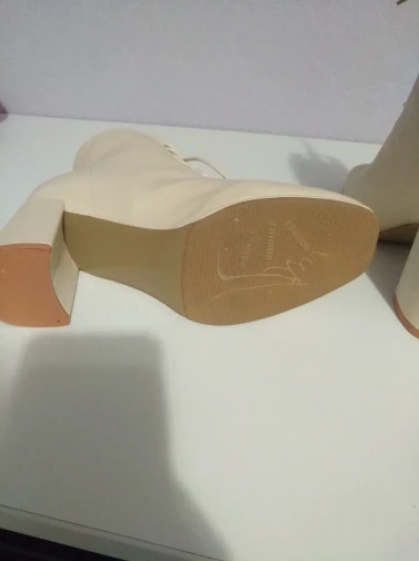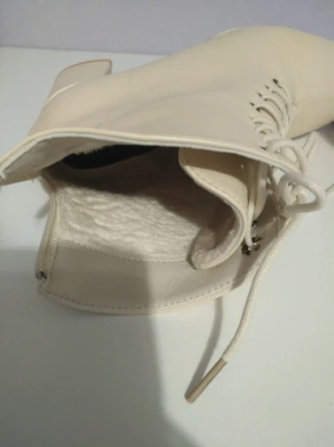 Потрясающие ботинки цвета слоновой кости. Сшито аккуратно, клей не торчит. Всё как на картинке! Подошло на мою худую стопу на 34 сантиметра. Заказывала 38 размер. Запас в носке обуви немного есть. Положили милый подарочек -резинку . Жаль, что посылка не в коробке. Было упаковано в пакет и пупырку. Повезло, что товар не повредился. Товар пришёл за две-три недели. Сделано из мягкой искусственной кожи, а внутри есть короткий искусственный мех. Подходит для тёплой весны или осени. Кажется, немного дороговато для 1500 рублей, но думаю, оно того стоит. Продавец ответил на мои вопросы, и разрешил возвратить товар, если не подходит. Буду носить с удовольствием!