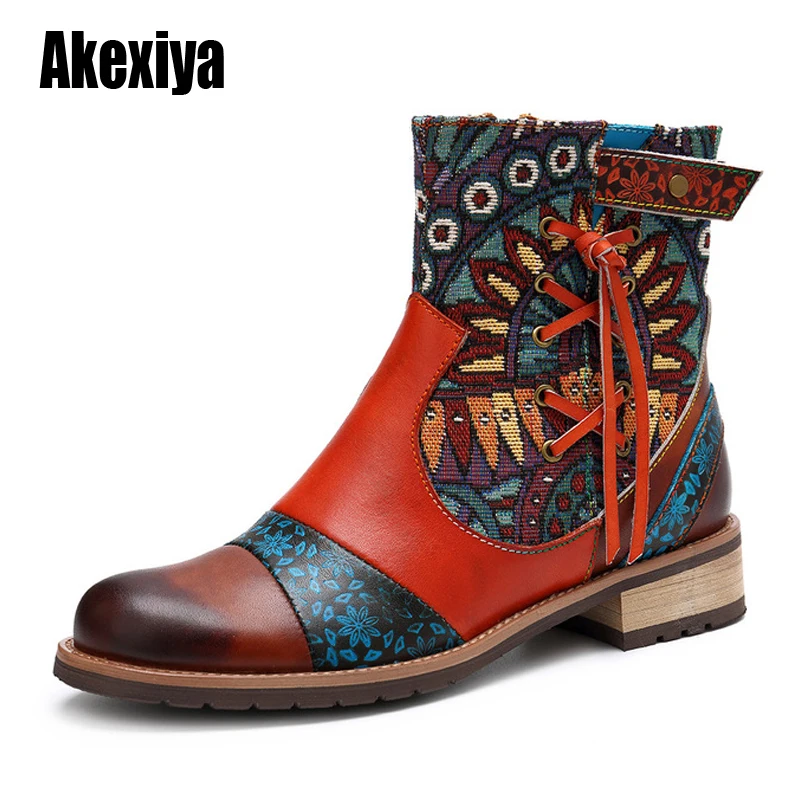 Женские ботинки из натуральной кожи, винтажные богемные ботильоны, женская обувь на молнии, на низком каблуке, женская обувь, 2021, u431