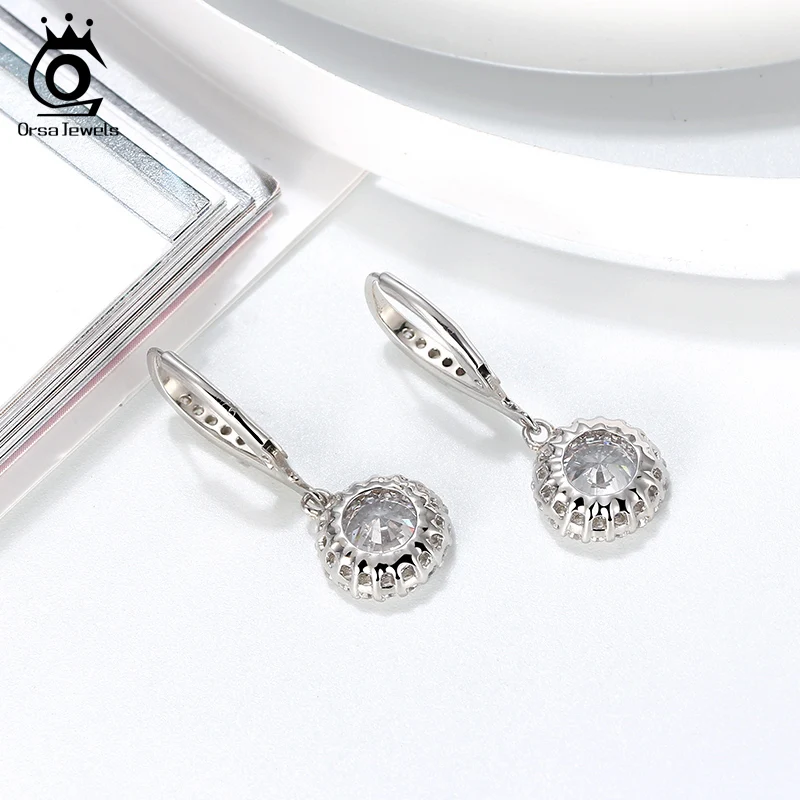 ORSA JEWELS, Настоящее серебро 925 пробы, весенние серьги-подвески с пряжкой, женские серьги из серебра 925 пробы, прозрачные круглые серьги AAAA CZ, ювелирные изделия, SE243