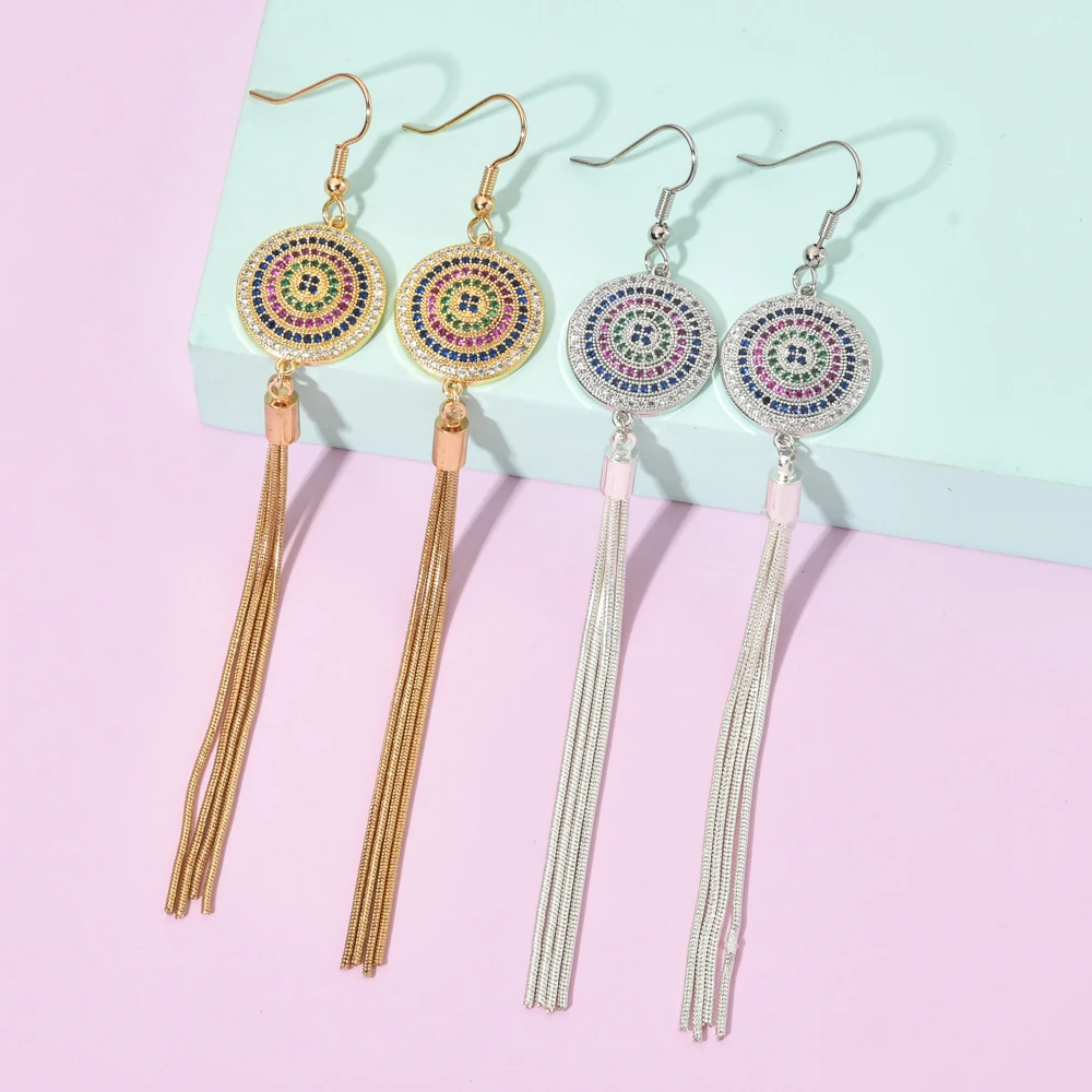 Европейские и американские модные темпераментные длинные серьги с кисточками и Цирконом класса ААА женскиеженские серьги для свадьвечерние ринки невесты ювелирные изделия серьги