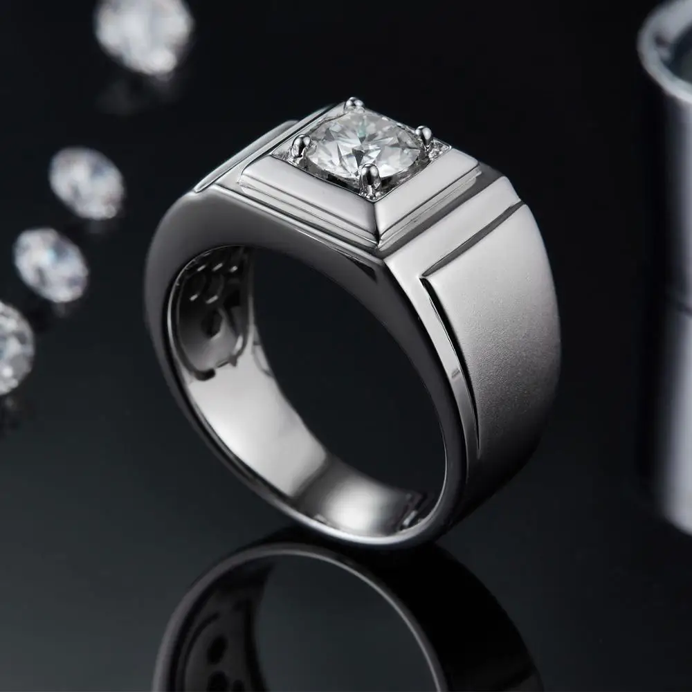 Мужское кольцо из серебра с муассанитом, 1,0 карат, 6,5 мм
