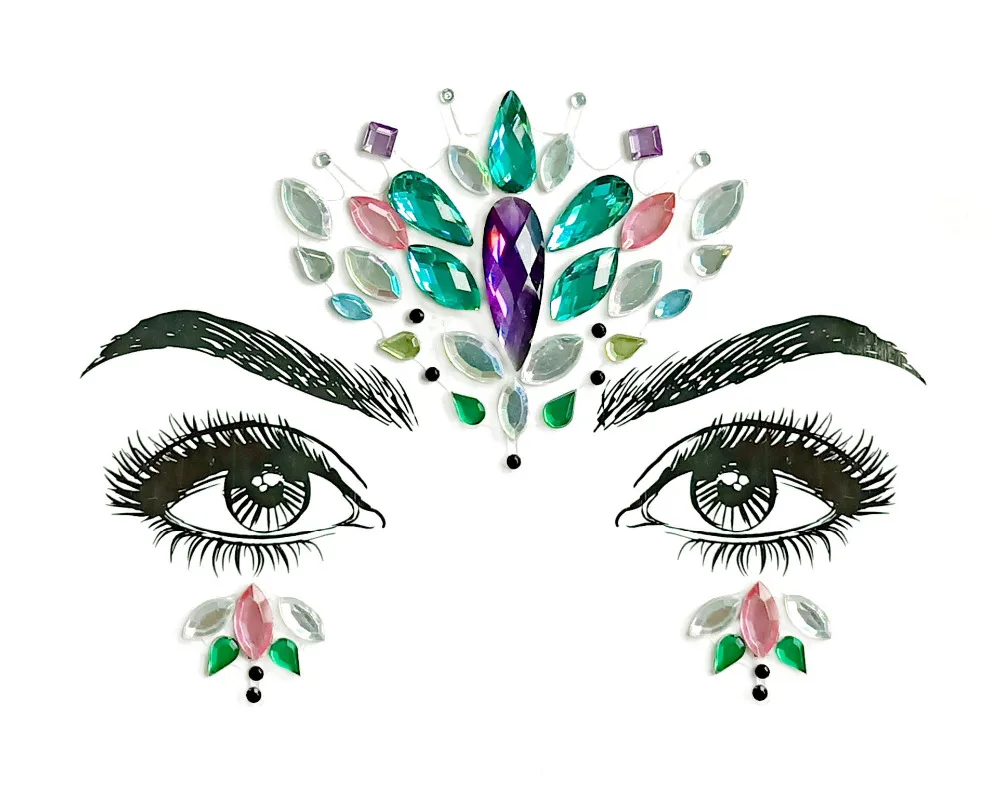 Драгоценные камни для лица, 1 комплект драгоценностей для лица русалки, праздничные драгоценные камни стразы, временные наклейки для тела, Кристальные наклейки, украшения