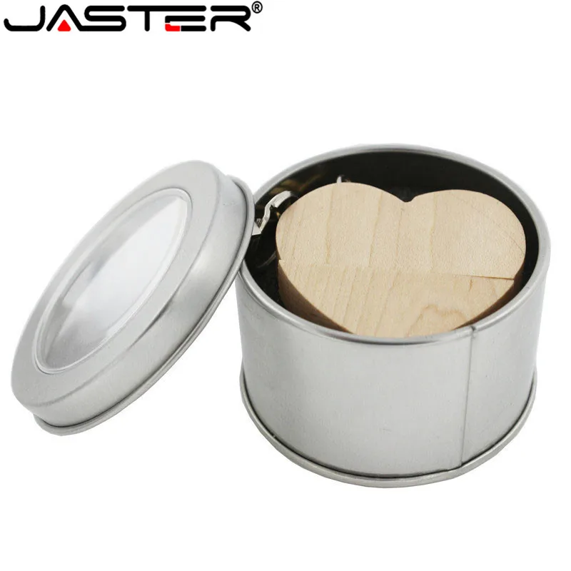 USB-накопитель деревянный в форме сердца, JASTER логотип на заказ дюйма, 128 ГБ, 64 ГБ, 32 ГБ, 16 ГБ, 8 Гб