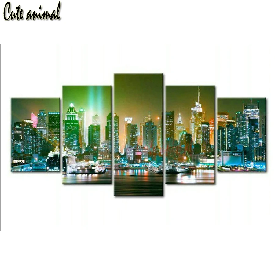 Полностью квадратная круглая Алмазная картина 5D DIY Алмазная вышивка город ночной вид узор Алмазная мозаика домашний Декор подарок 5 шт.