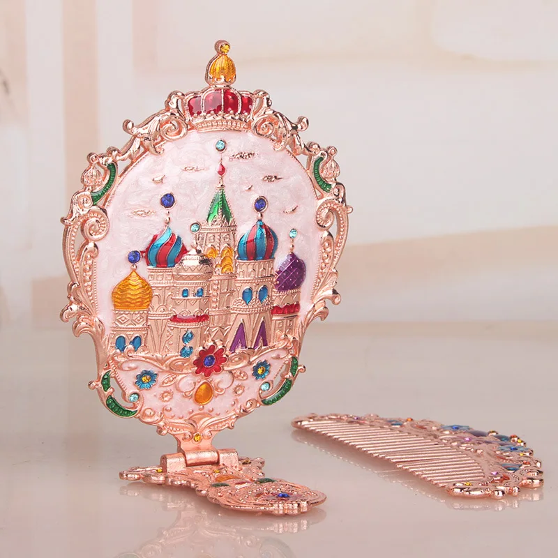 Ручка зеркальная расческа Ретро Euporen 3D портативное стоящее зеркало для макияжа набор складных настольных принцесс Mirro с подарочной коробкой для хранения