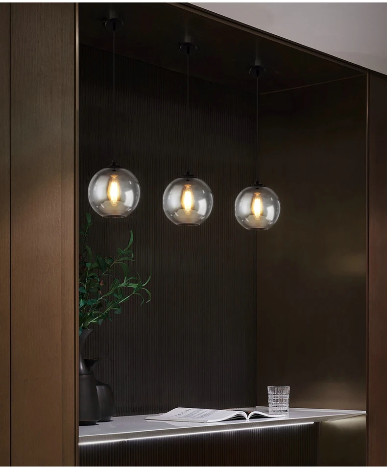 Современные подвесные светильники из дымчатого серого стекла для го...