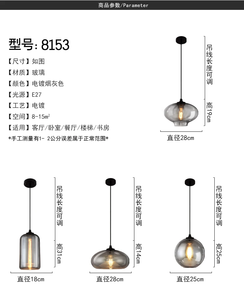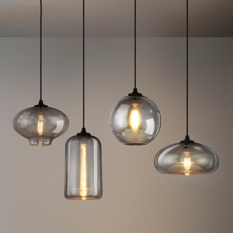 Американская винтажная Подвесная лампа из дымчатого серого стекла, скандинавский светодиодный светильник для гостиной, декоративное освещение в стиле лофт, индастриал