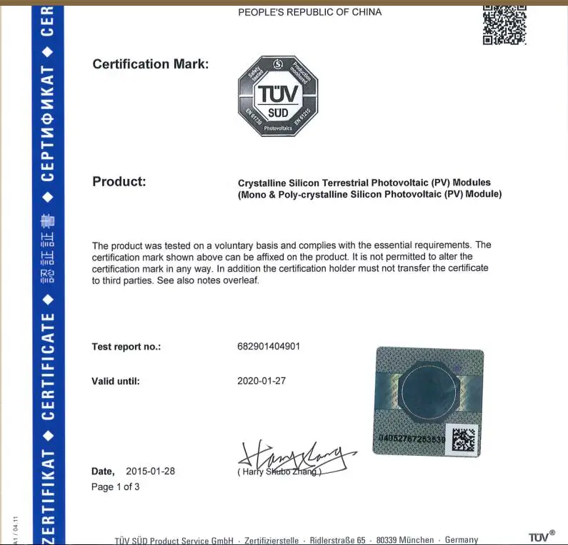 Solar Panel CertificteTUV,CE,ISO,ROHS,UL