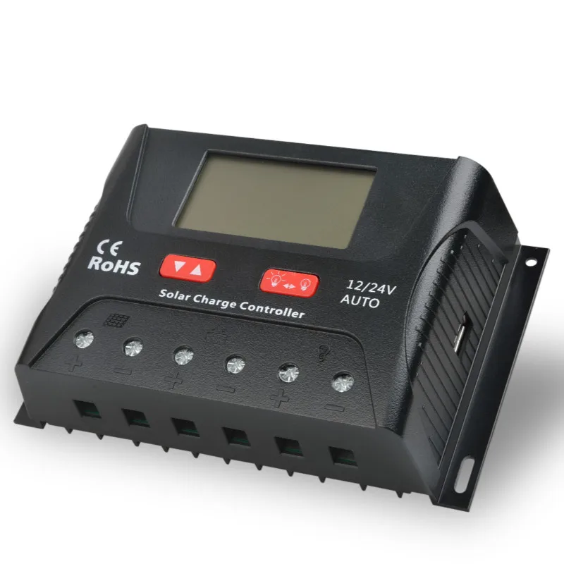 Напряжение системы: 12 В/24 В Номинальный ток: 30 А Вес нетто: 390 г Размер: 164*103*47 мм Рабочее напряжение: -25 ℃-+ 55 ℃ Уровень защиты: IP30 Входное напряжение солнечной батареи: <55 в Максимально допустимое напряжение на конце аккумулятора: <34 в Защита от избыточного давления: 16 В Температурная компенсация:-мВ/℃/2 в Номинальная мощность PV-панели: 12 В/450 Вт, 24 В/900 Вт USB * 1