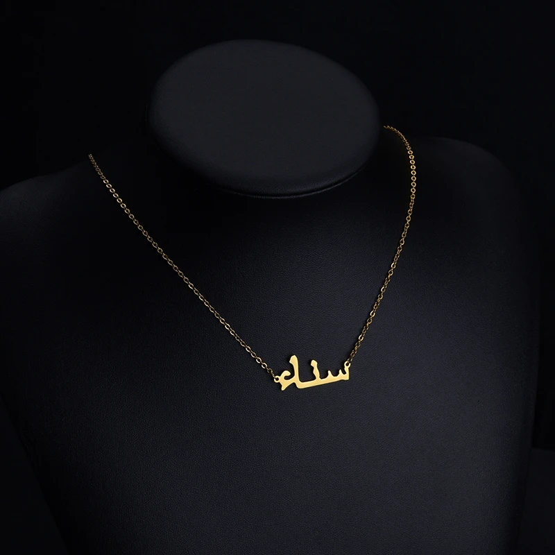 Исламское ювелирное изделие, персонализированное ожерелье с кулоном из нержавеющей стали, Золотая цепочка, ожерелье с арабским именем, подарок для женщин и подружек невесты