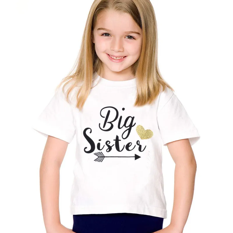 Детские модные футболки с надписью Big Sister, детские летние футболки с коротким рукавом, повседневные топы, детская одежда для мальчиков и девочек