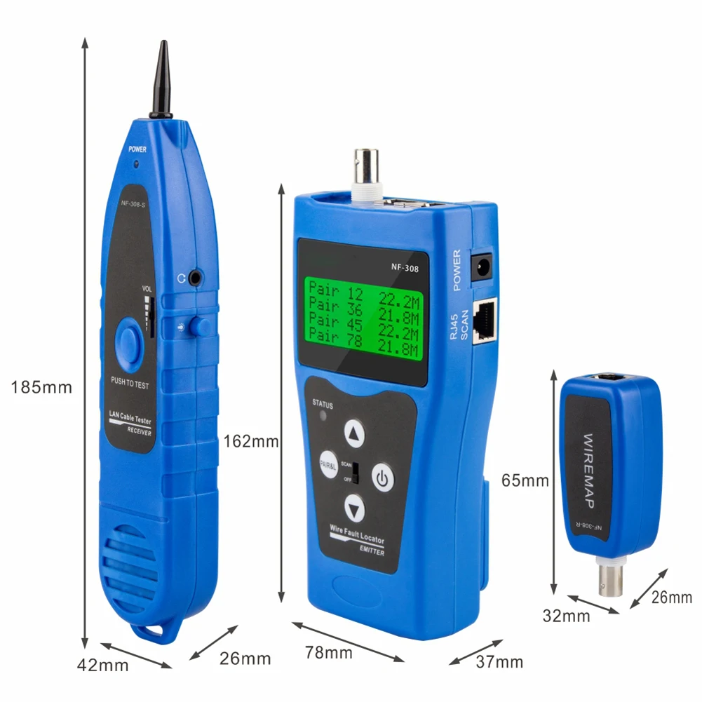 Он может измерить длину сетевого кабеля в пределах 305 метров, может определить положение короткого замыкания и точки разрыва и имеет функцию калибровки.