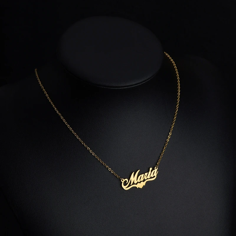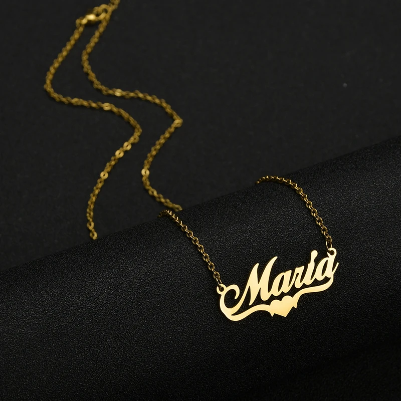 Ожерелья ручной работы с именем и именем для женщин и мужчин, ювелирные изделия из нержавеющей стали, заполненные золотом массивные ожерелье бижутерия в форме сердца