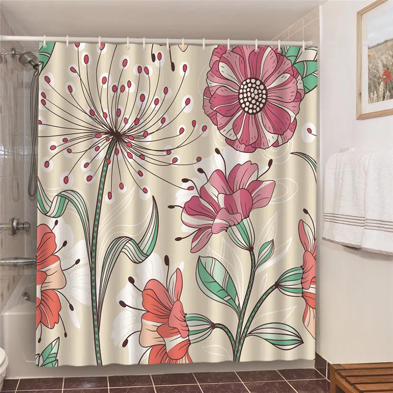 Постер с цветами, занавески для душа, водонепроницаемая занавеска для ванной из полиэстера, занавеска для украшения дома, занавеска для ванной комнаты, занавеска для душа