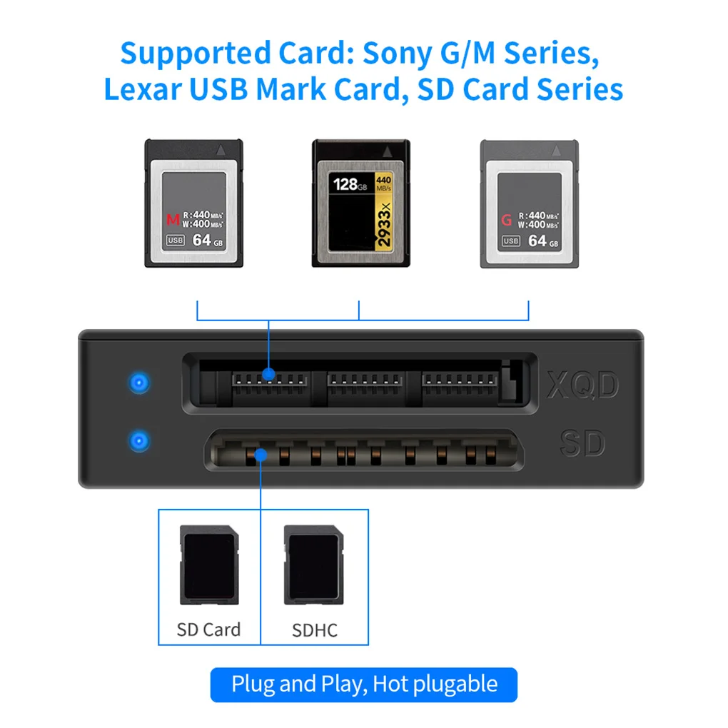 Считыватель карт памяти Rocketek Type C USB 3,0 SD XQD для Sony M/G Series для ОС Windows Computer