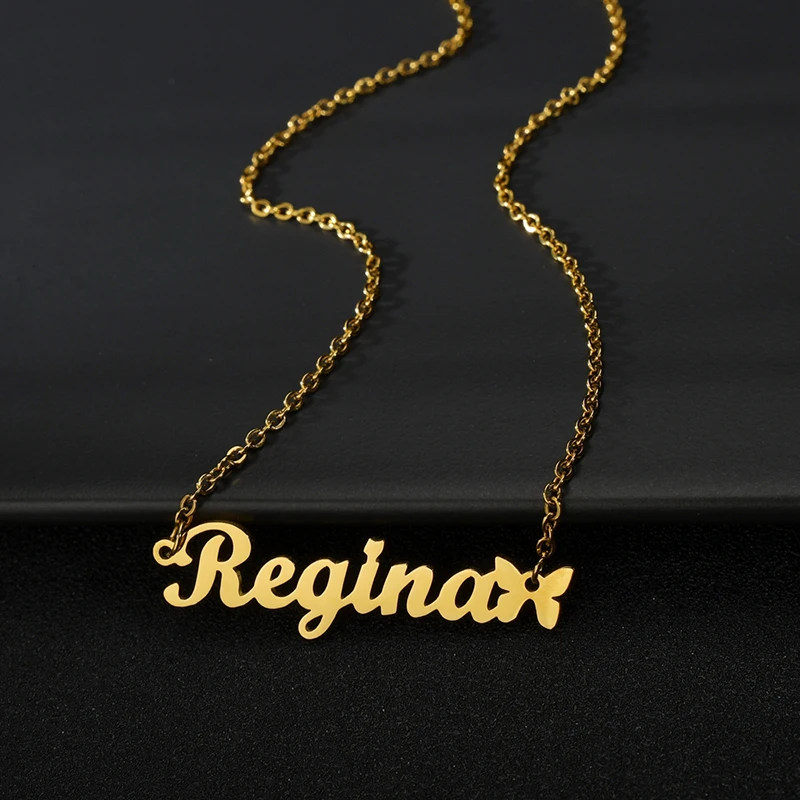 Ожерелье с подвеской-бабочкой на заказ, золотая цепочка из нержавеющей стали, персонализированные именные ожерелья, чокер, ювелирные изделия, ожерелья для женщин
