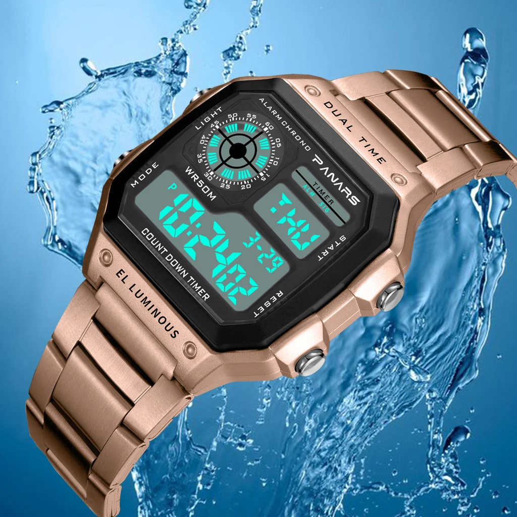 Часы PANARS мужские электронные из нержавеющей стали, роскошные дел...