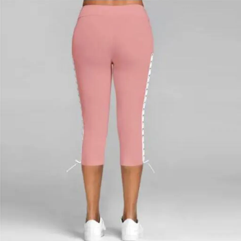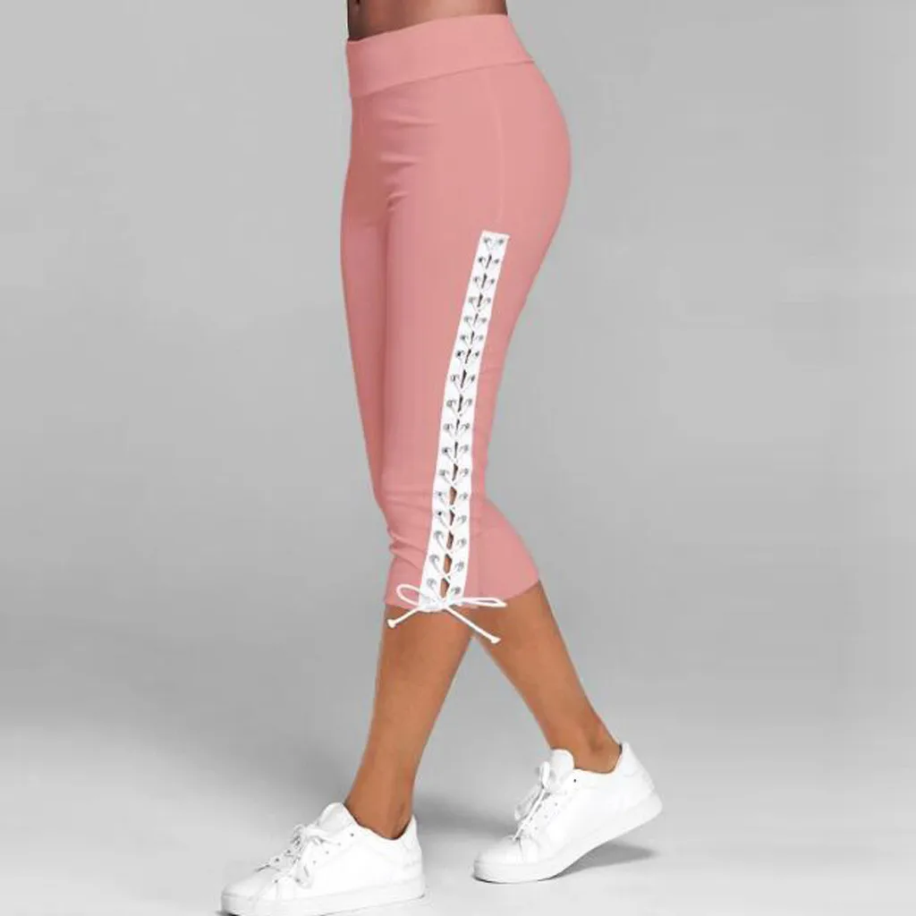 Женские спортивные штаны для фитнеса, брюки 34 длины, спортивные штаны, летние эластичные Капри с боковой повязкой, брюки Pantalon Mujer Leggin