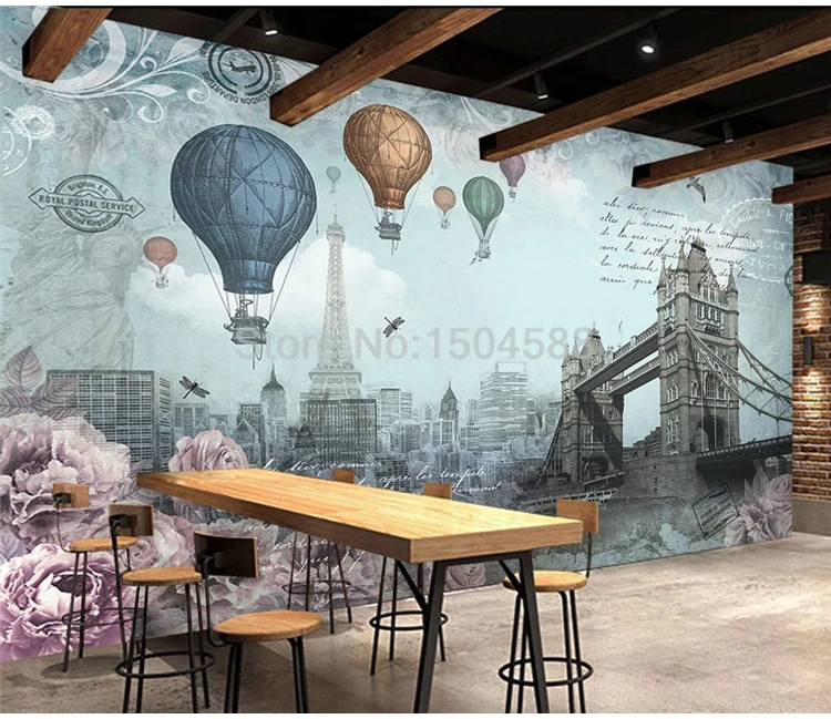 Настенные обои по фото по индивидуальному заказу в стиле ретро с воздушными шарами, стенная роспись в виде здания для ресторана, кафе, декор для стен