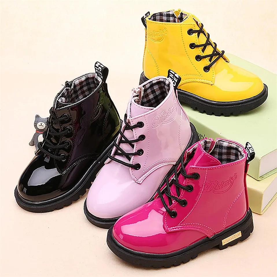 Новая детская обувь, ботинки для детей, размеры 21-37, Ботинки Martin для девочек из ПУ кожи, водонепроницаемые зимние детские ботинки, ботинки для девочек