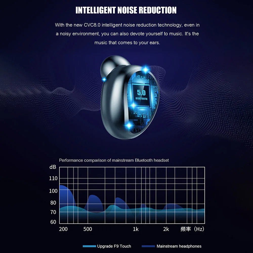 Беспроводные наушники F9, Bluetooth 5,0, TWS HIFI, мини-наушники-вк...