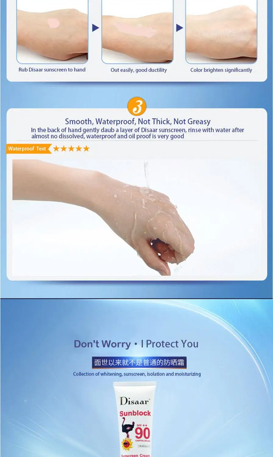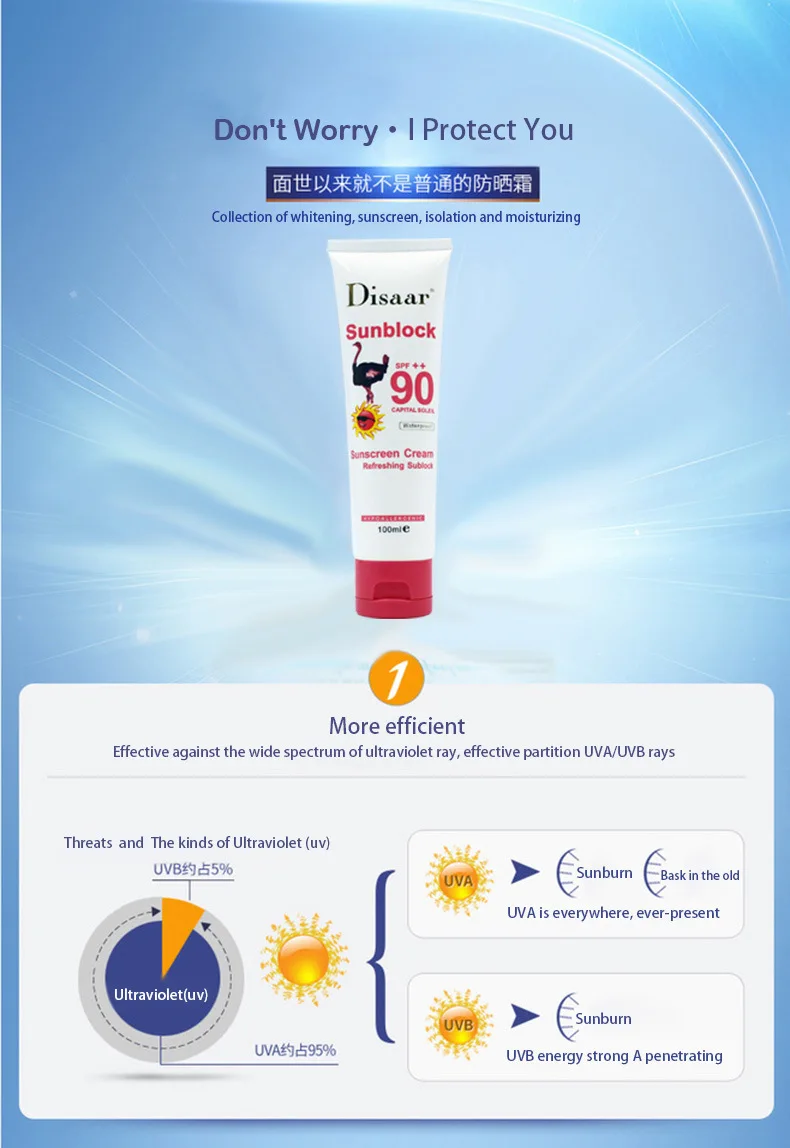 10 шт.лот Страусиная основа солнцезащитный крем SPF90 PA + + консилер увлажняющий против морщин солнцезащитный крем для лица 100 г солнцезащитный крем