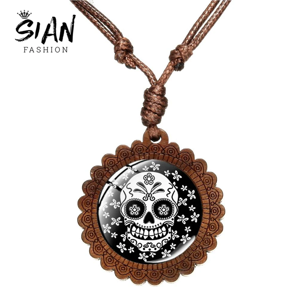 Ожерелье с черепом из мексиканского сахарного дерева, в стиле панк