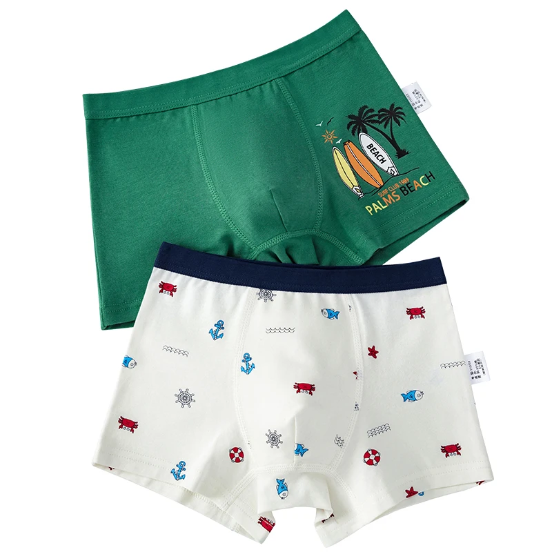 2 шт.лот, нижнее белье для мальчиков, летние хлопковые трусы-боксеры зеленого цвета с рисунком для мальчиков, детская одежда для 3, 4, 6, 8, 10, 12, 14 лет, OKU203016