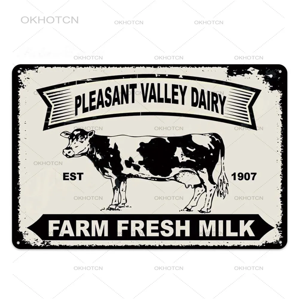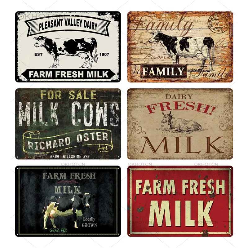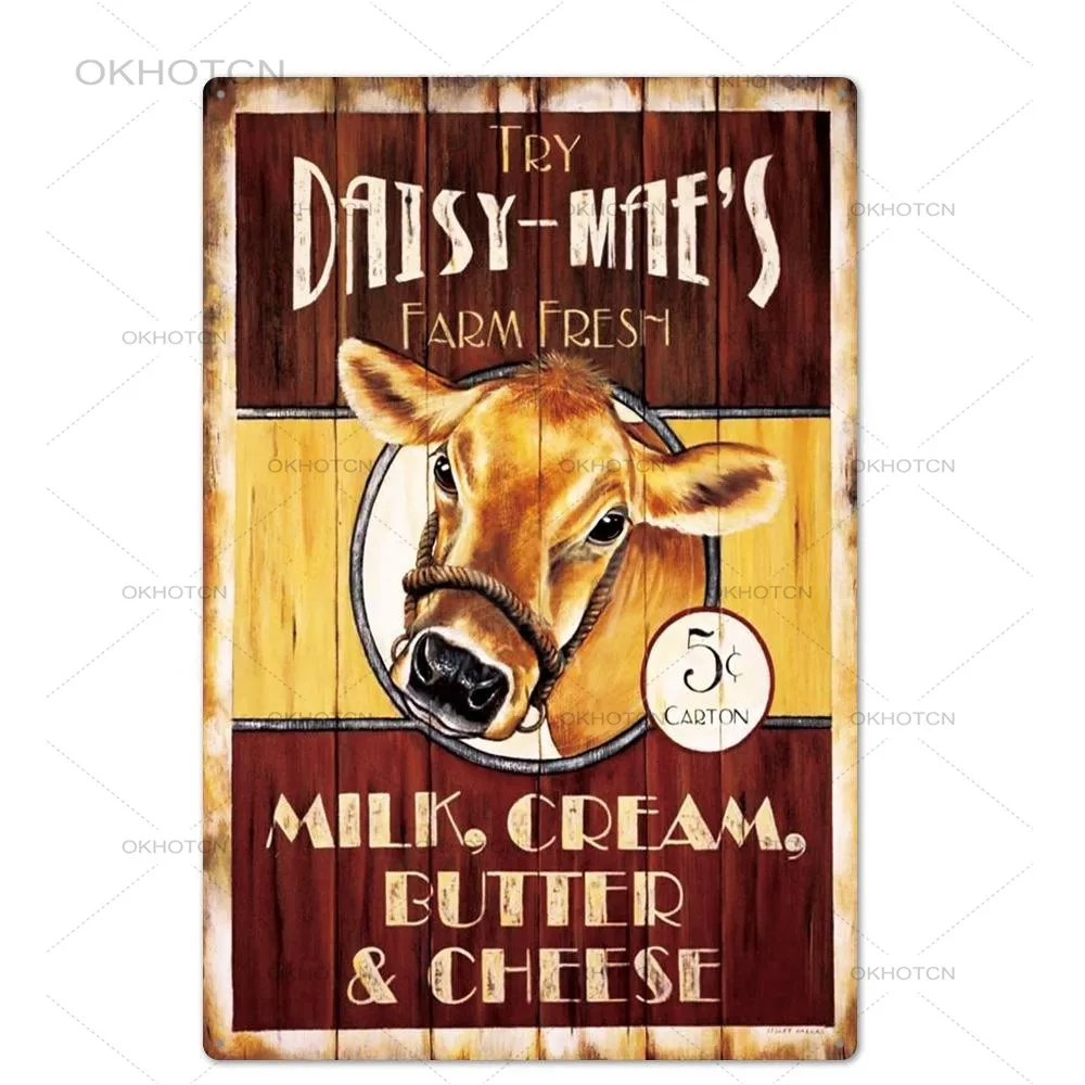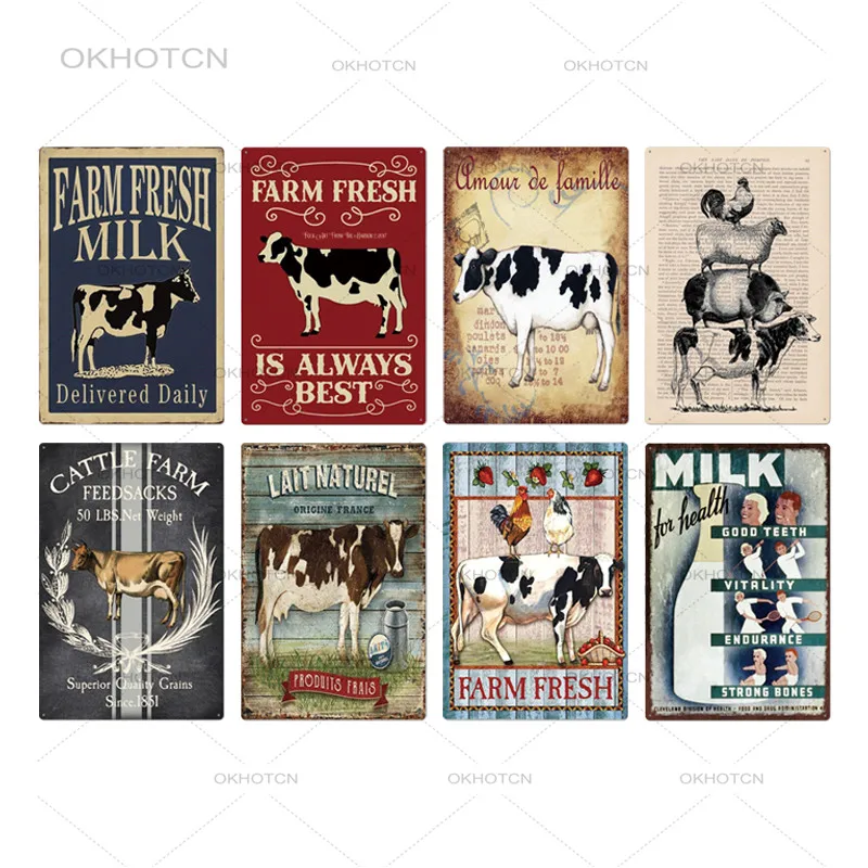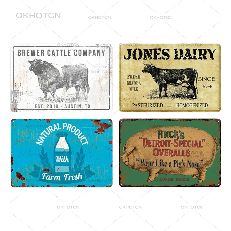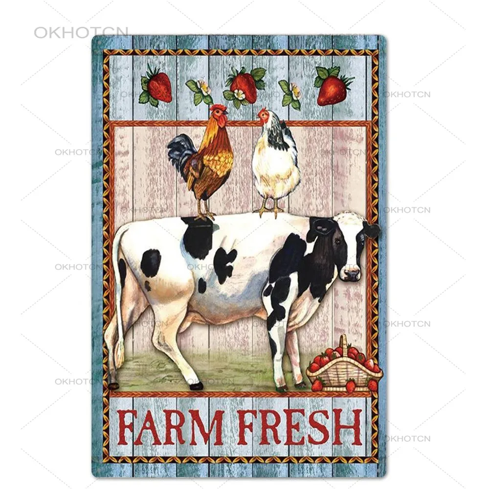 Оловянная вывеска в виде свежего молока на ферме, винтажная металлическая корова, свинья, налет, Декор для дома, украшение на стену, ретро рекламный щит, железные пластины (20x30 см)