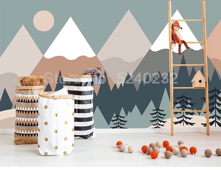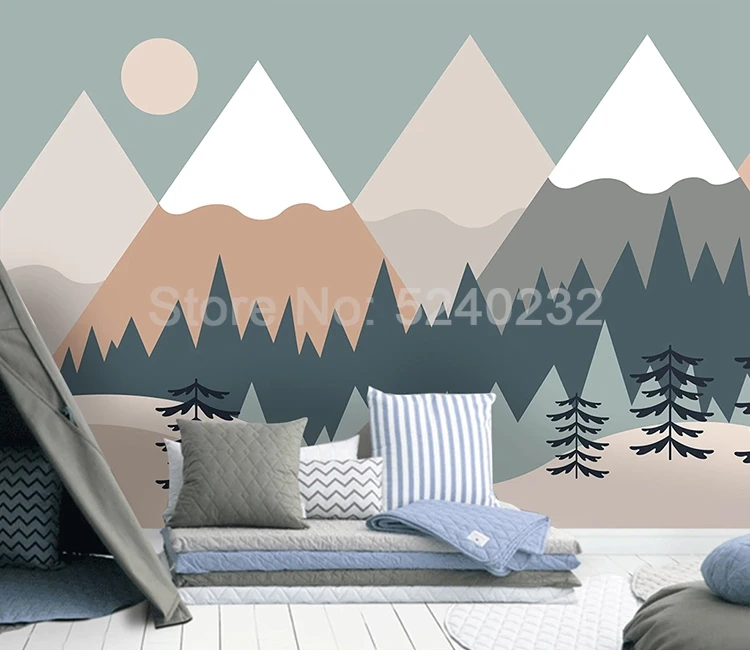 Пользовательские 3D фото обои Ручная роспись Дерево горы мультфильм детская комната спальня фон настенная Современная роспись Papel De Parede